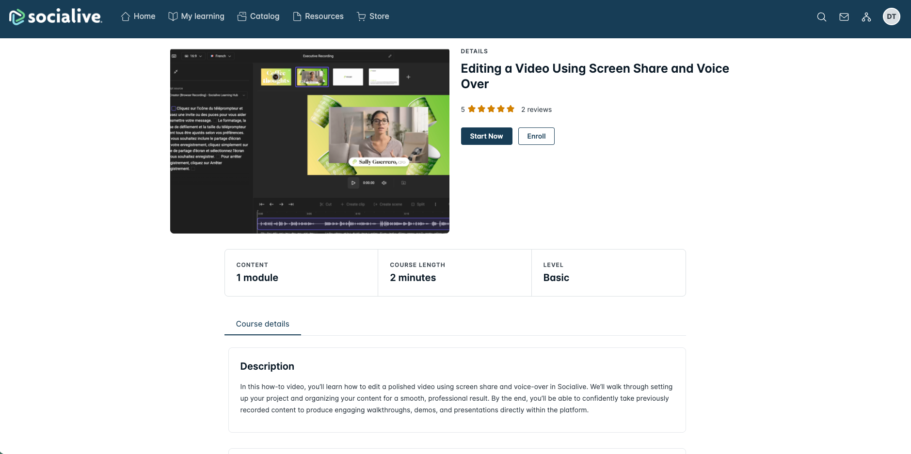 From the catalog, you can dive straight into a new course. The how-to courses are accessible for learners of all levels and cover a specific workflow or product area in the platform in just a few minutes.